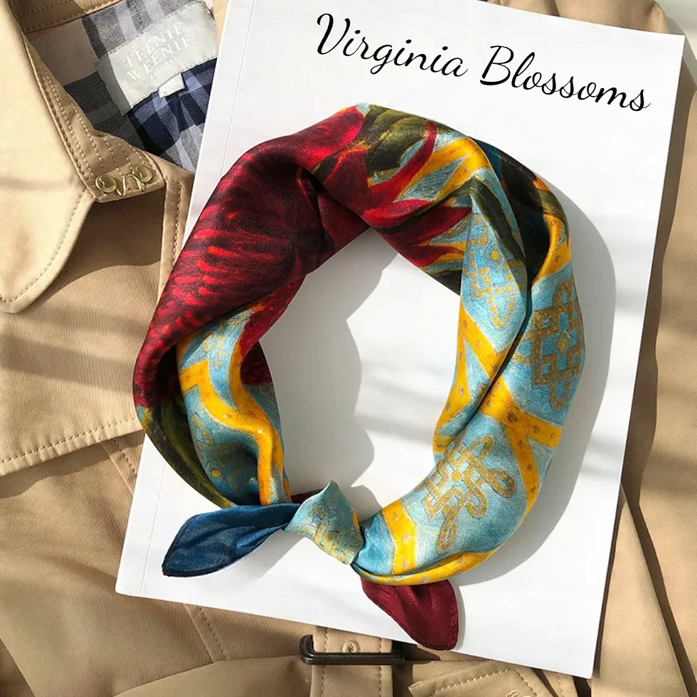 Floral Boho 53cm Silk Scarf Bandana | Leaf Pattern Square Scarf
