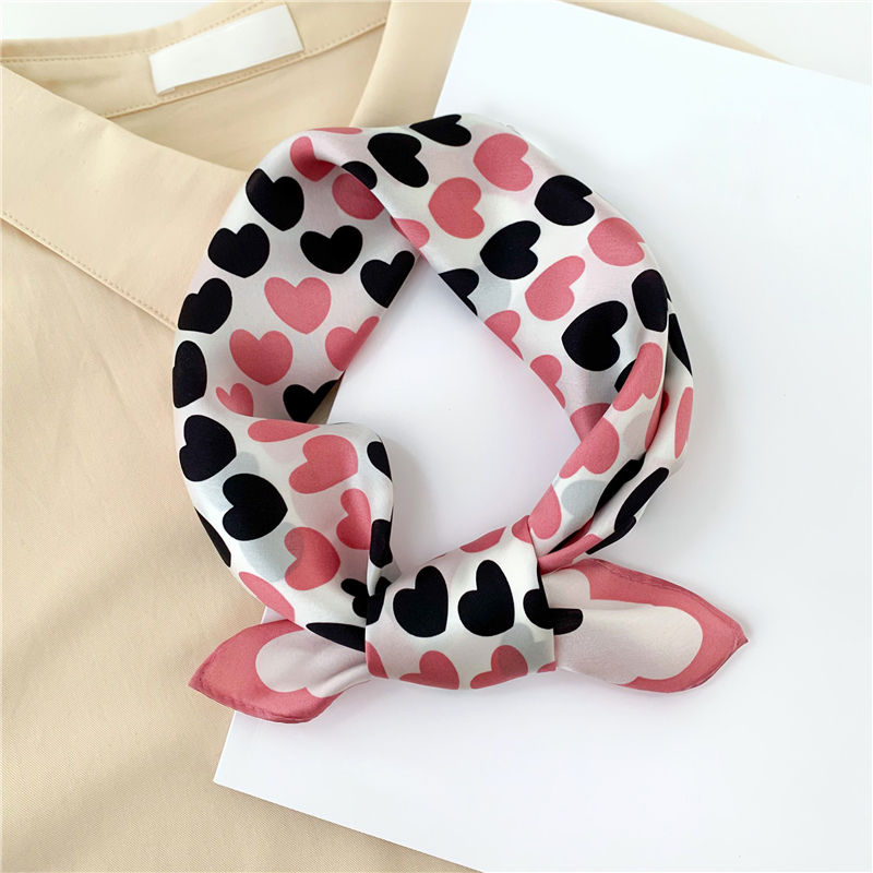 Black & Pink Hearts 53cm Silk Scarf Bandana | Small Scarf